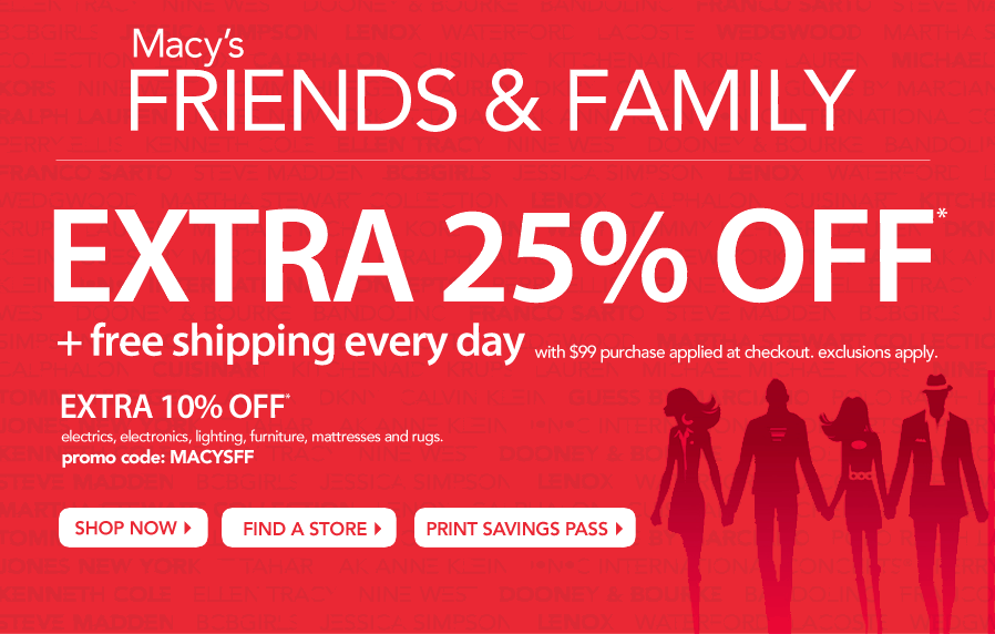 Save an extra 25% off Macy's Friends & Family sale online with the code